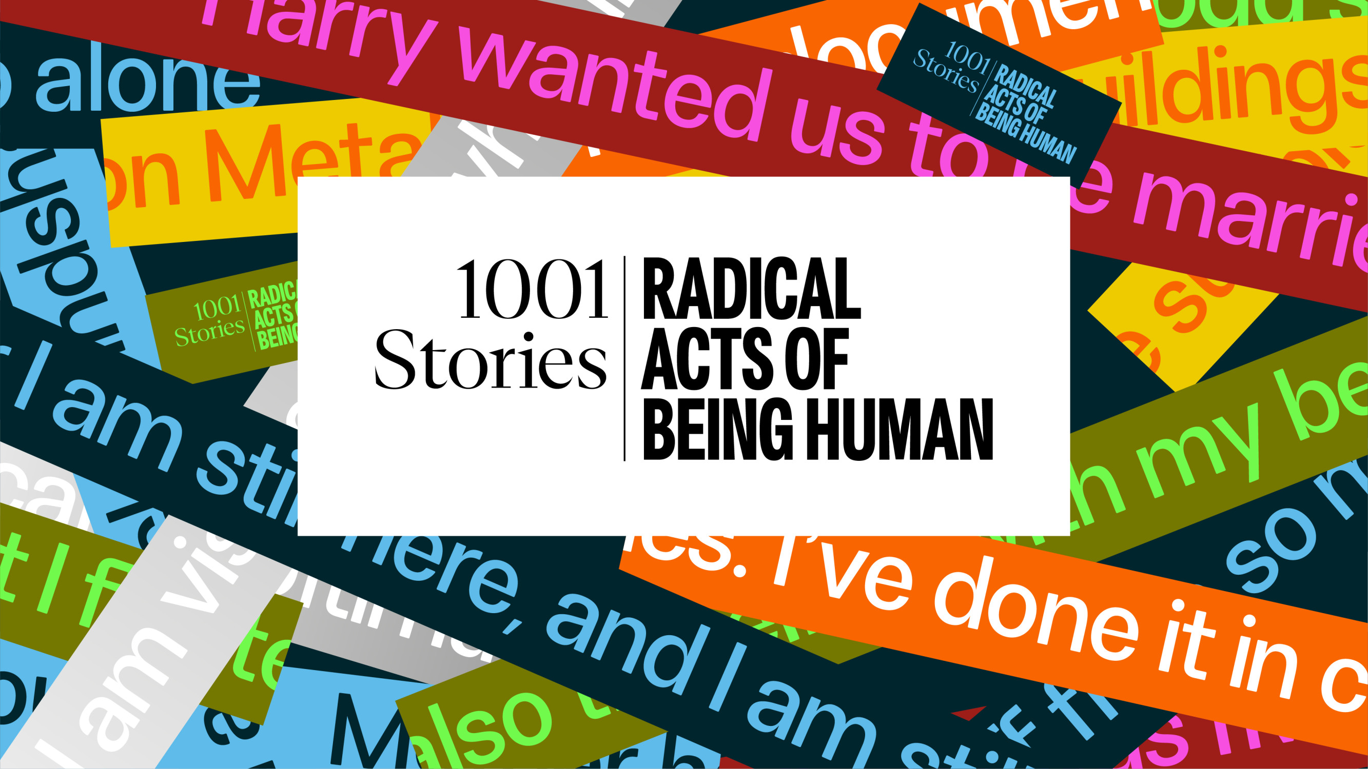 1001 Stories comes from the folk tales of 1001 Nights, in which the protagonist Scheherazade – in order to stay alive – had to tell the monarch Shahryar one thousand stories. Every night, she told a new story, and every morning the monarch spared her life. These were stories of survival that kept Scheherazade going, and the monarch entertained. It’s this analogy of stories of survival that 1001 Stories: Radical Acts of Being Human orbits around.