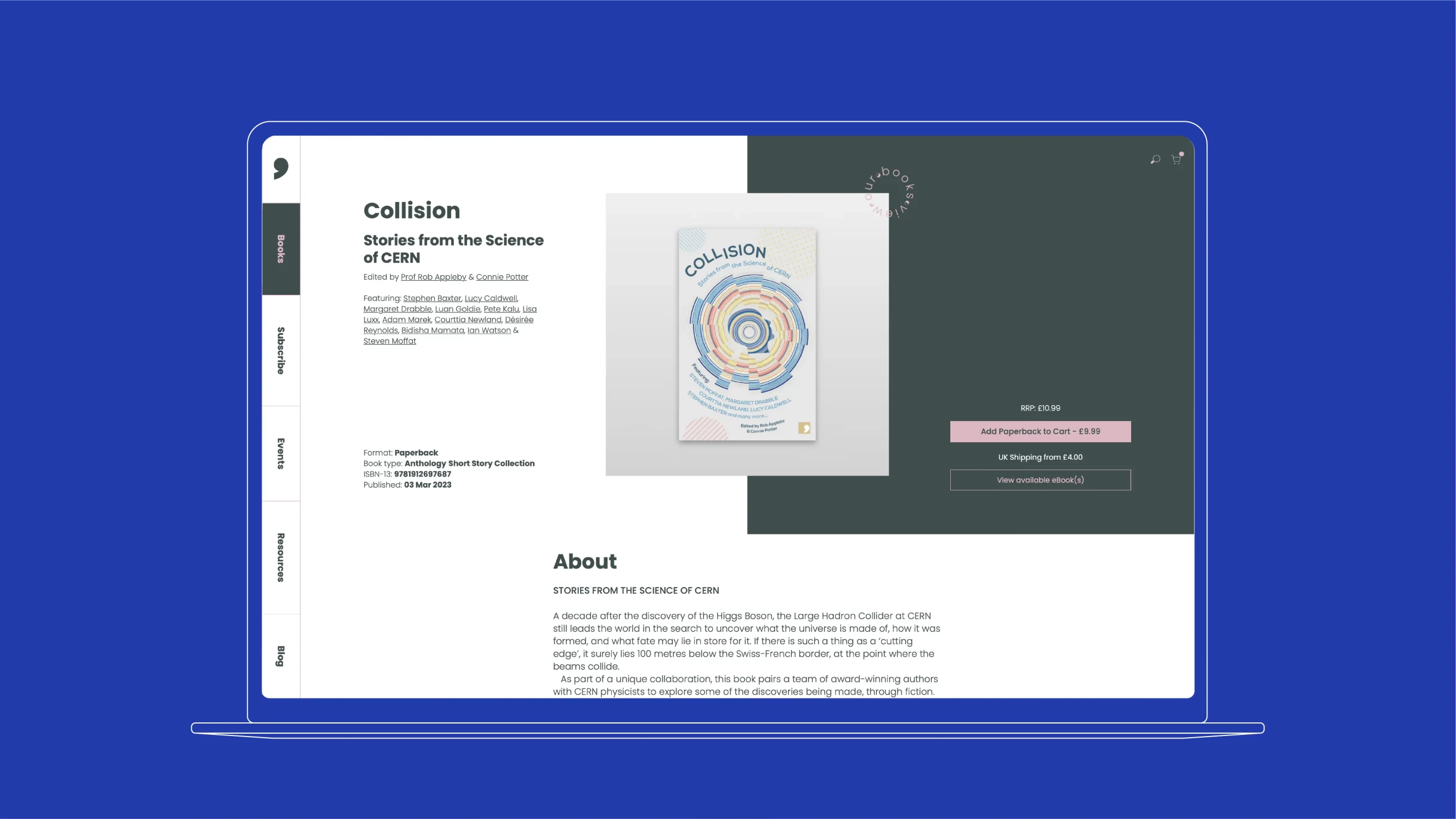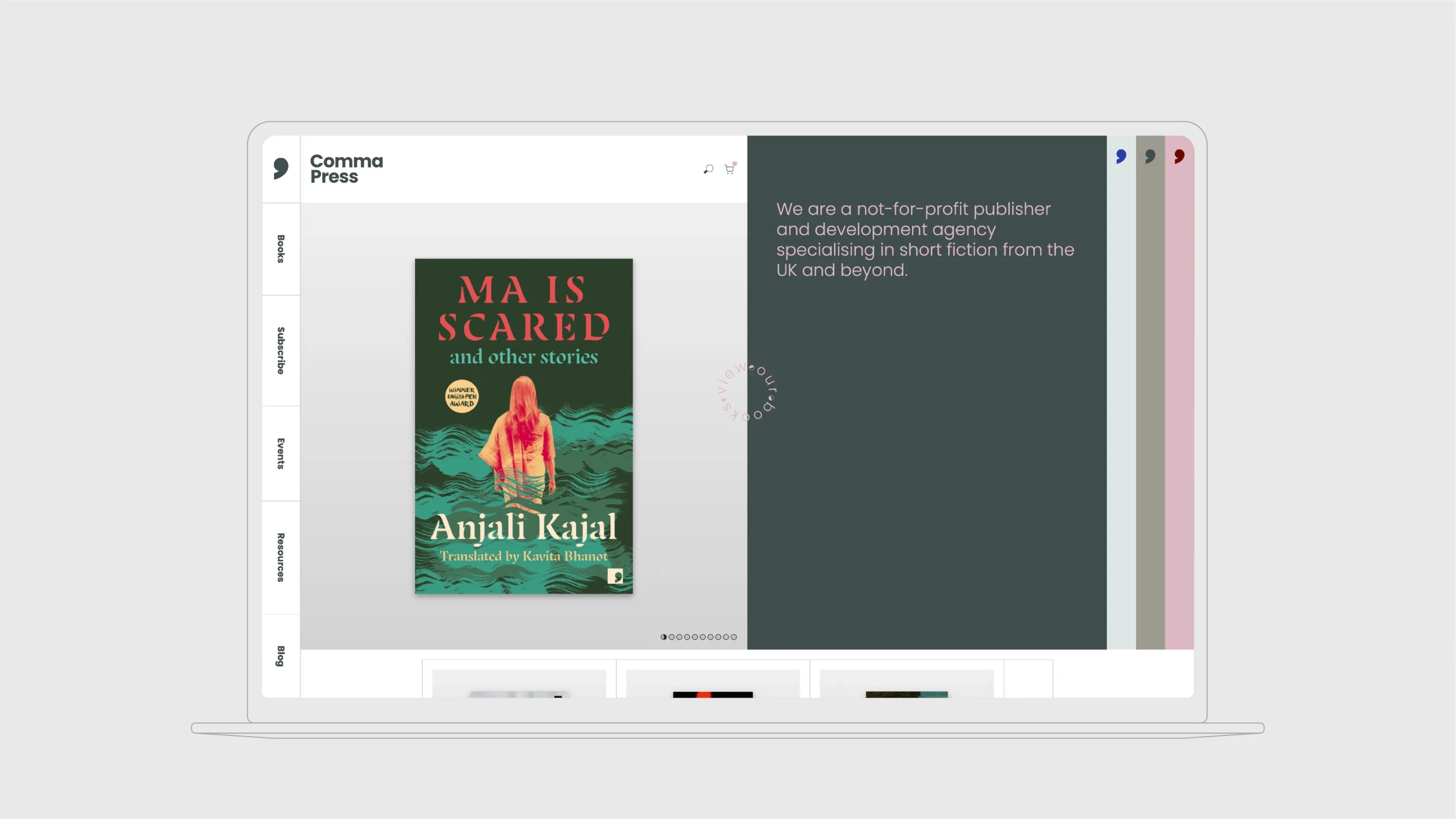 Andy Marshall, Head of Digital, FieldIn a world where large-scale online shopping has eaten into the smaller independent book shops, especially post-Covid, it was important for us to bring some of that physicality and personality into Comma Press’ new website. From the moment you arrive at the website, we wanted it to feel like you were in an independent book shop, browsing for a new book to take home. To this end, we placed the book covers front and centre, using subtle motion and shadows to elevate them from the page, to remind the user they were holding a book, made of real paper that you could almost smell, taking it to the till, where other books might catch their eye, to be added to their purchase. Ultimately, we wanted the user to regain that joy of buying a tangible product in a world that had lost some of that physical contact, to feel invested in their purchase, and by extension, invested in the success of the author and publisher.