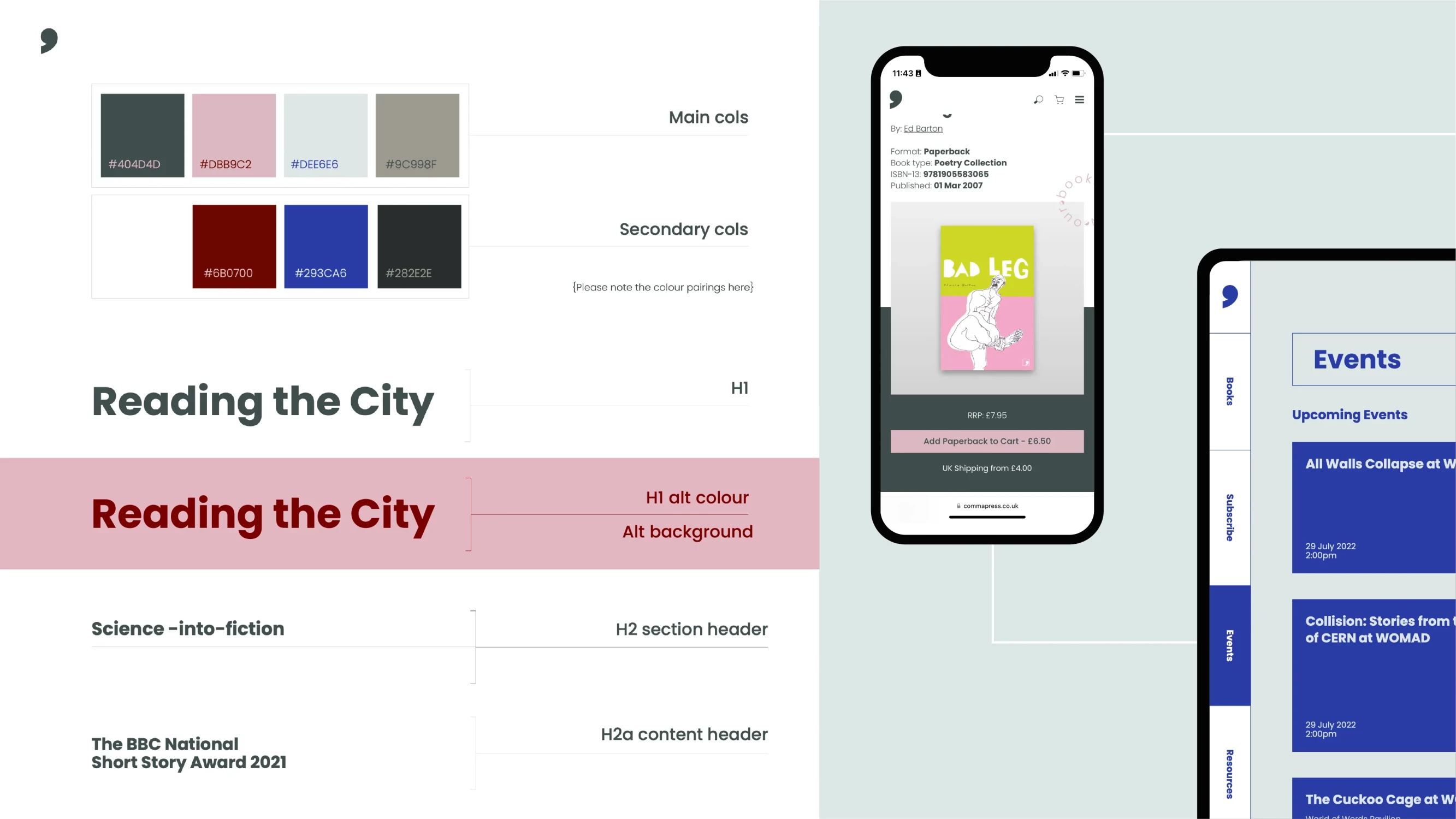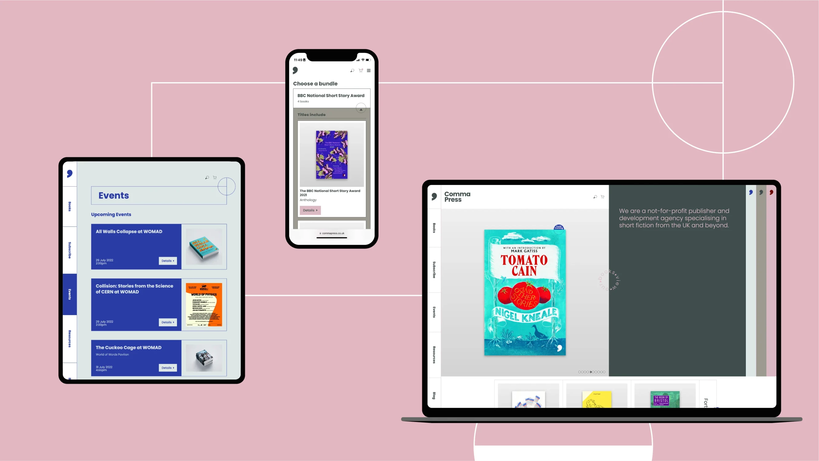 Comma Press came to Field with a two part challenge: to rebrand the business to reflect their international reputation, and to update their website in line with the rebrand. Established in 2007 by Ra Page and Sarah Eyre, the brand was feeling tired and didn’t communicate their breadth of works, or position them as the go-to publishers for short stories. Their website needed to act as a hub for all their activity, including a blog, events, news and resources, and the website’s user experience and e-commerce journey needed clarity.