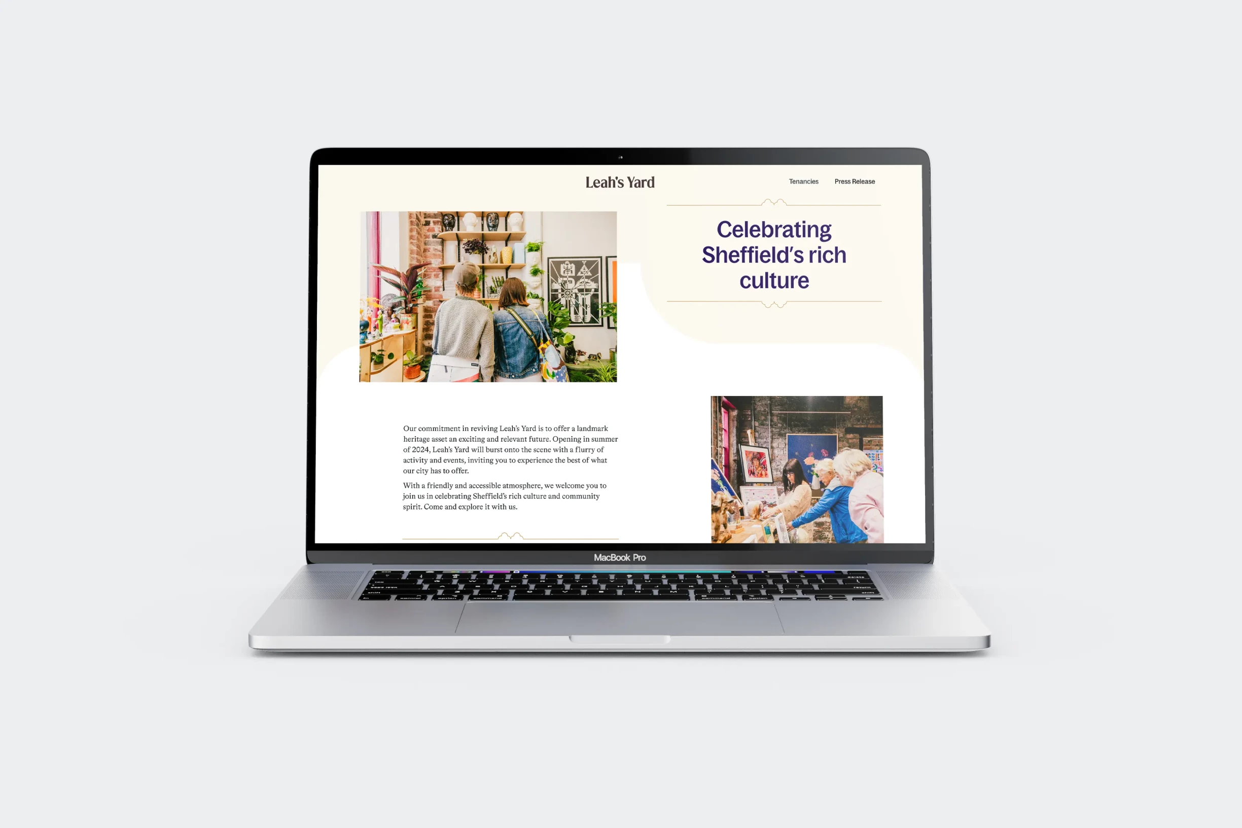 Leah’s Yard is Sheffield’s city centre creative hub, championing independent retailers and small businesses. Once a symbol of Sheffield’s industrial heritage, the Grade II* listed site has been transformed into a vibrant retail and trading space supporting independent retailers and small businesses as part of Sheffield City Council’s Heart of The City II project. Field collaborated with the Sheffield Tech Parks to reimagine Leah’s Yard, building a strong brand, visual identity, signage and website that would be pay homage to the historical significance while presenting it as a modern, vibrant destination.