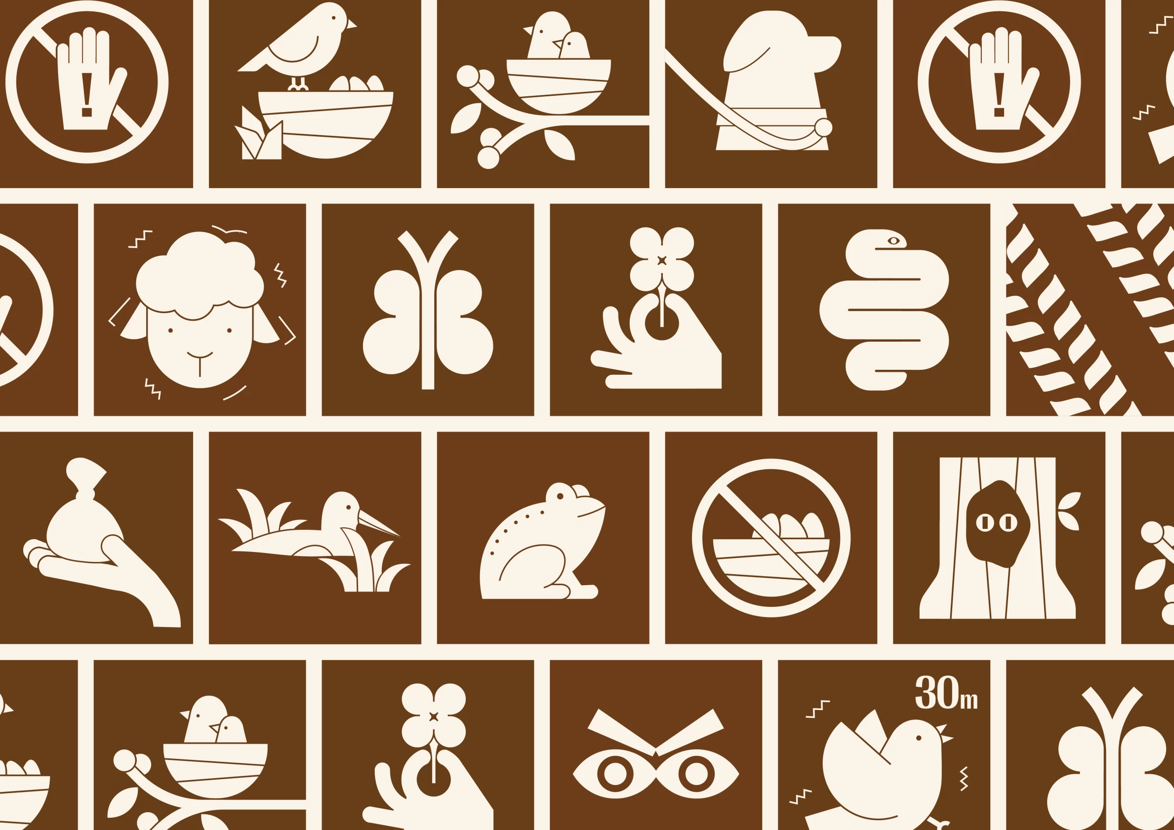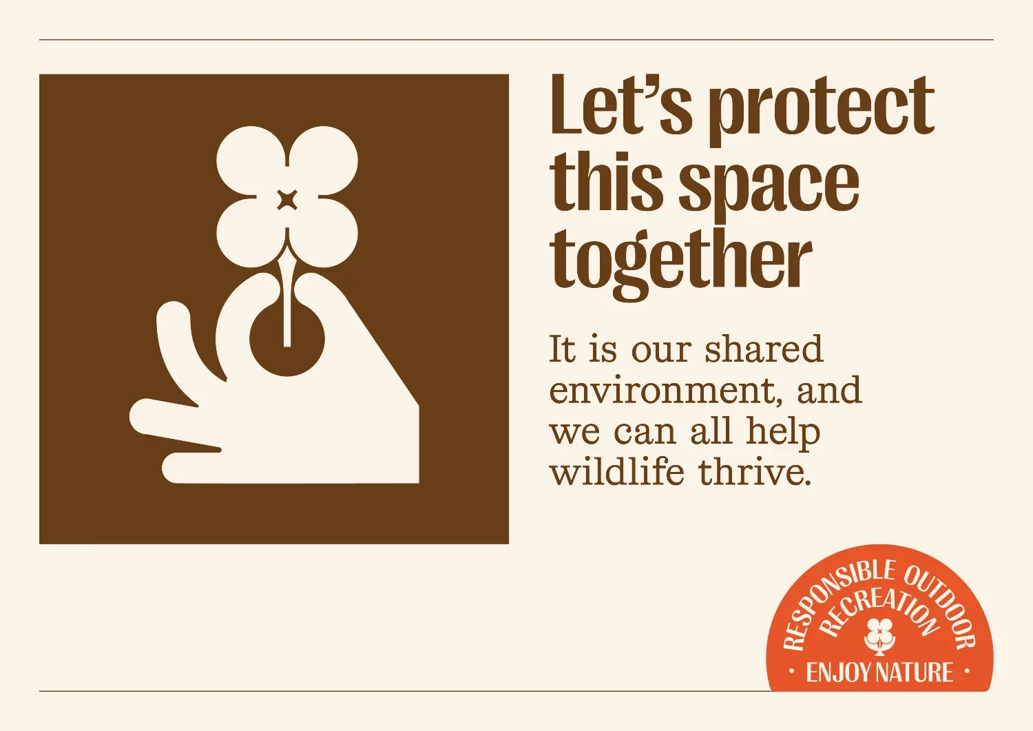 The suite of signage includes: welcome boards, informative messaging, and a range of icon-led A3 signs that convey both positive and neutral guidance, as well as warnings and negative messages where necessary. The designs influence visitor behaviour, motivating them through positive reinforcement while also clearly indicating consequences for actions that could negatively impact the environment.