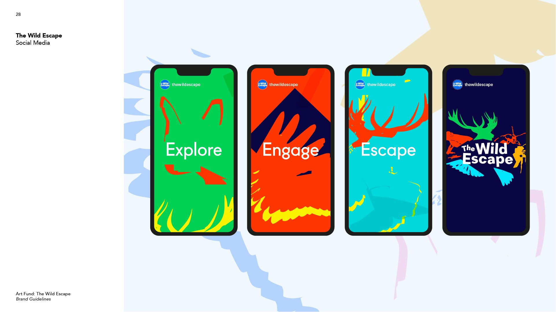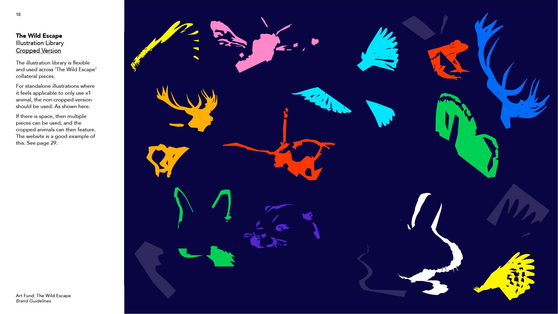 Natalie Cahillane, Head of Creative, Art Fund.Working with Field has been nothing short of an absolute pleasure. Briefing in the identity for a commission that demanded a level of fluidity that would allow for the work of both children and established Artists alike, to sit within one harmonious ‘eco-system’, is no mean feat. And that’s exactly what Field gave us - a flexible brand package that allowed ‘The Wild Escape - to meld beautifully into the ‘The Wild World’ seamlessly, holding all the many different touch points in the process.